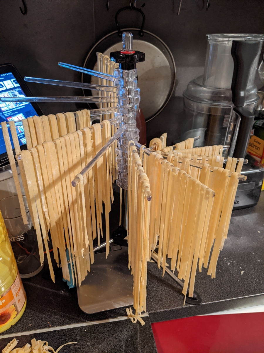 9. couper les rubans de pâtes à la longueur souhaité, et les couper en lanières ou autre